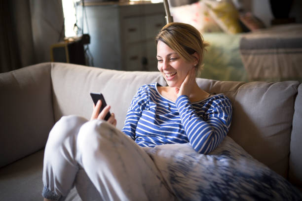 A woman sitting on the couch take some good time